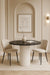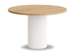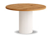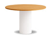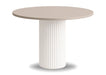 Okrągłystół Nestato propozycja dla osób ceniących eleganckie i ponadczasowe meble. Jegobiała owalna noga z metalunadaje lekkości i świeżości wnętrzu, jednocześnie gwarantując solidną konstrukcję.Blat stołujest z wytrzymałejpłyty laminowanejdostępny w wielu wariantach kolorystycznych pozwala na idealne dopasowanie do aranżacji kuchni, jadalni lub salonu.