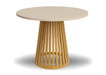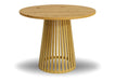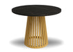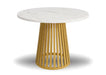 Stół okrągłyVieroto połączenie elegancji i solidności, które sprawdzi się w każdej jadalni, kuchniczy salonie. Charakterystycznazłota lamelowa noga wykonana z metalunadaje mu lekkości wizualnej, a jednocześnie stabilności. Blat powstał z wytrzymałejpłyty laminowanej, co gwarantuje odporność na codzienne użytkowanie oraz łatwe czyszczenie.