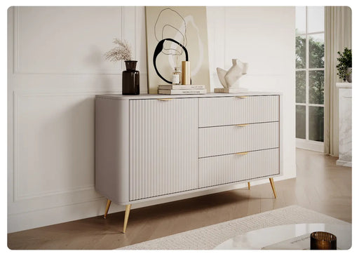 Zobaczyć szczegołowy opisKomoda Lisse Typ D – nowoczesna forma z ryflowaniem i półką za drzwiami