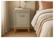 Szafka nocna WINDSOR 11 to połączenie subtelnego designu z praktycznymi rozwiązaniami. Jej kompaktowe wymiary sprawiają, że idealnie sprawdzi się zarówno w małych, jak i przestronnych sypialniach. Frezowane fronty, metalowy uchwyt w złotym odcieniu oraz drewniane nogi nadają jej eleganckiego charakteru, doskonale wpisując się w aranżacje klasyczne, skandynawskie i modern classic.