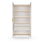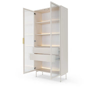 Wybierając witrynę Lumi Kaszmir, zyskujesz mebel o wyjątkowym uroku. Jasny dekor sprawia, że wnętrze staje się bardziej przestronne, eleganckie i przytulne. To propozycja idealna do pomieszczeń, w których światło i delikatność odgrywają ważną rolę.