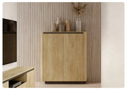 Wysoka komoda Telo B to idealne połączenie funkcjonalności i estetyki, inspirowane stylem japandi. Jasne wybarwienie dębu cremona ociepla wnętrze, a czarne akcenty dodają charakteru i podkreślają minimalistyczną linię mebla. To doskonały wybór do nowoczesnych salonów, sypialni lub jadalni, w których liczy się zarówno uporządkowana przestrzeń, jak i elegancki wygląd.